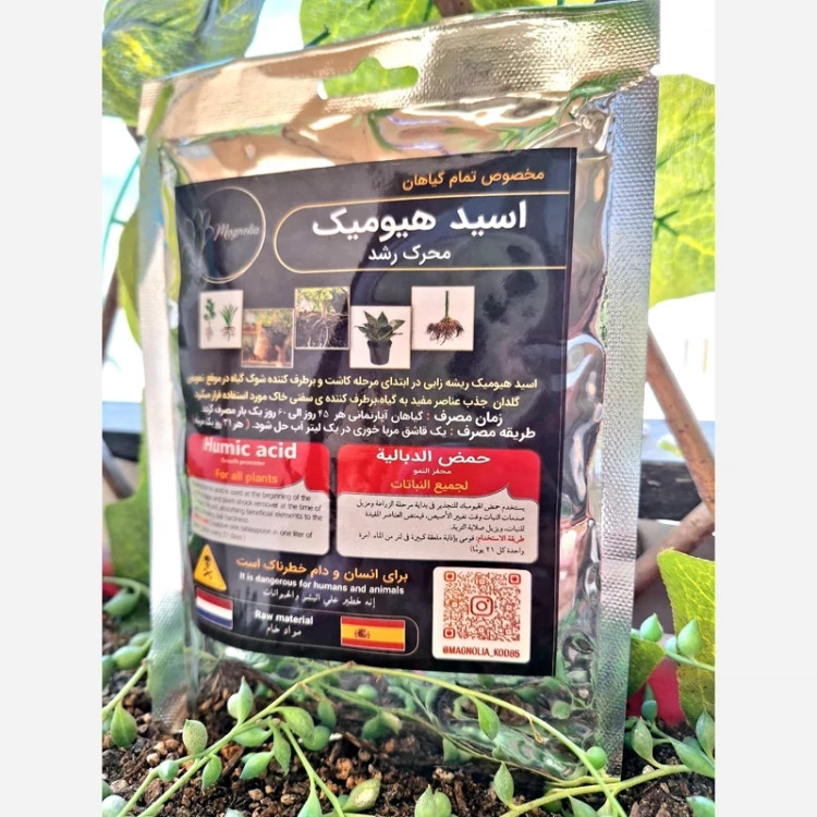 هیومیک اسید از مواد آلی تجزیهشده طبیعی بهدست میآید و سرشار از اسیدهای هیومیک و فولویک است. این ترکیبات باعث افزایش ظرفیت نگهداری آب و عناصر غذایی در خاک شده و دسترسی ریشه گیاه به مواد مورد نیاز را آسانتر میکنند.